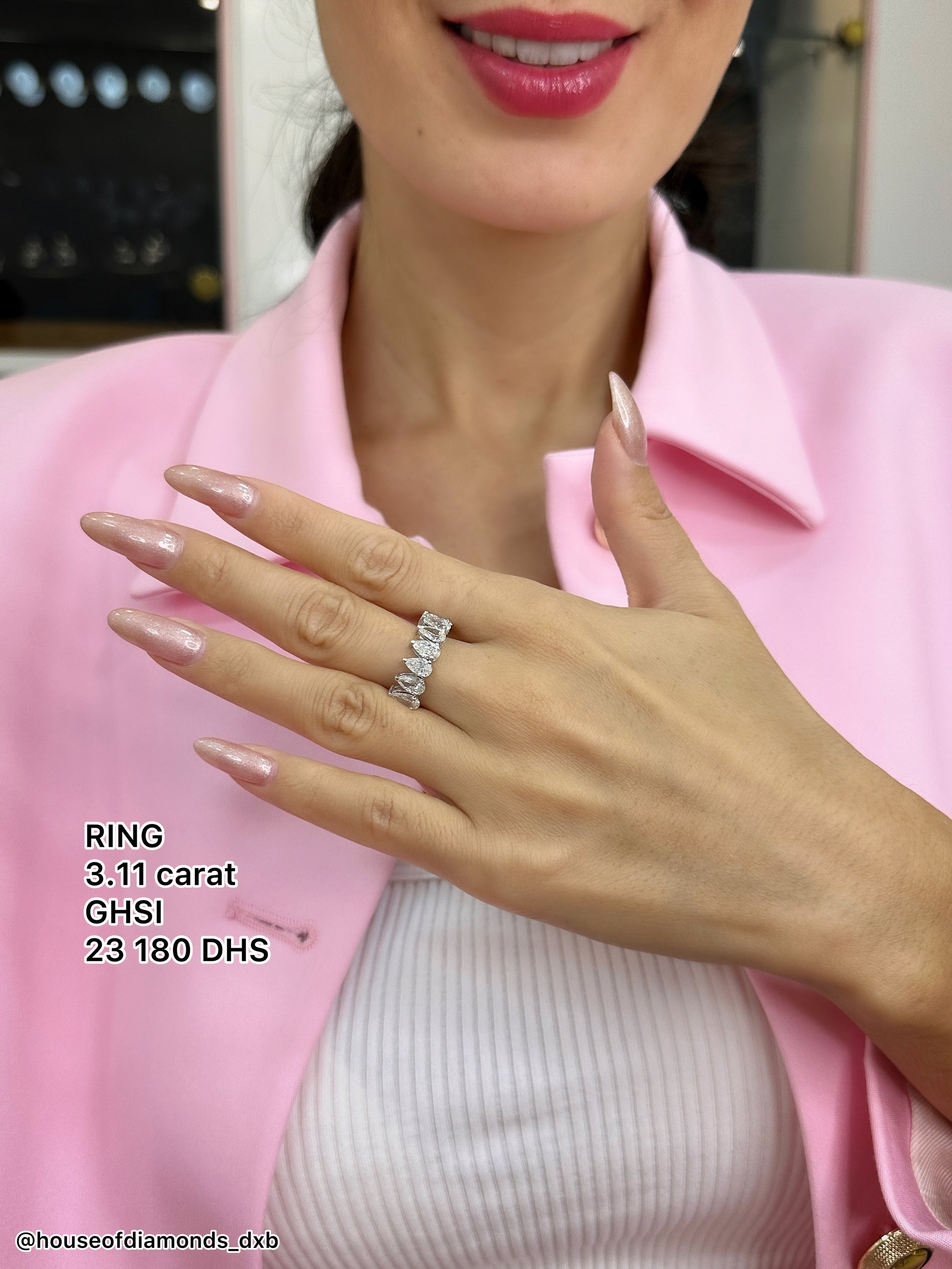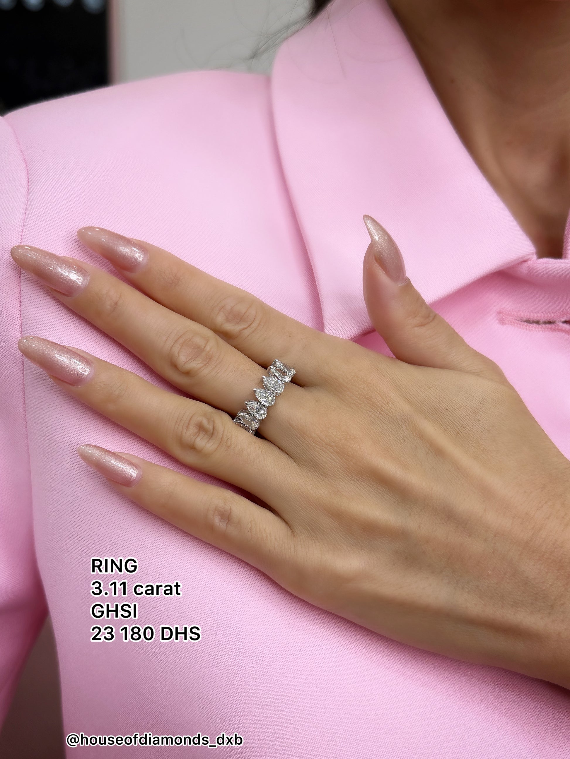 40PT Pear Half Eternit (ARJS2429) Diamond CT- 3.11 Carat Total (0.40ct each) / Gold weight - 4.47 Grams is an exquisite piece of diamond jewelry that will captivate attention with its timeless beauty. This stunning half eternity band features a total of 3.11 carats of dazzling diamonds, with each diamond weighing 0.40 carats. Crafted with precision and elegance, this ring is made from 4.47 grams of high-quality gold, ensuring both durability and a luxurious feel. The sophistication and sparkle of this diamond ring make it the perfect accessory for formal events such as weddings, galas, or black-tie affairs. It will add a touch of glamour and elegance to your ensemble, making you stand out from the crowd.