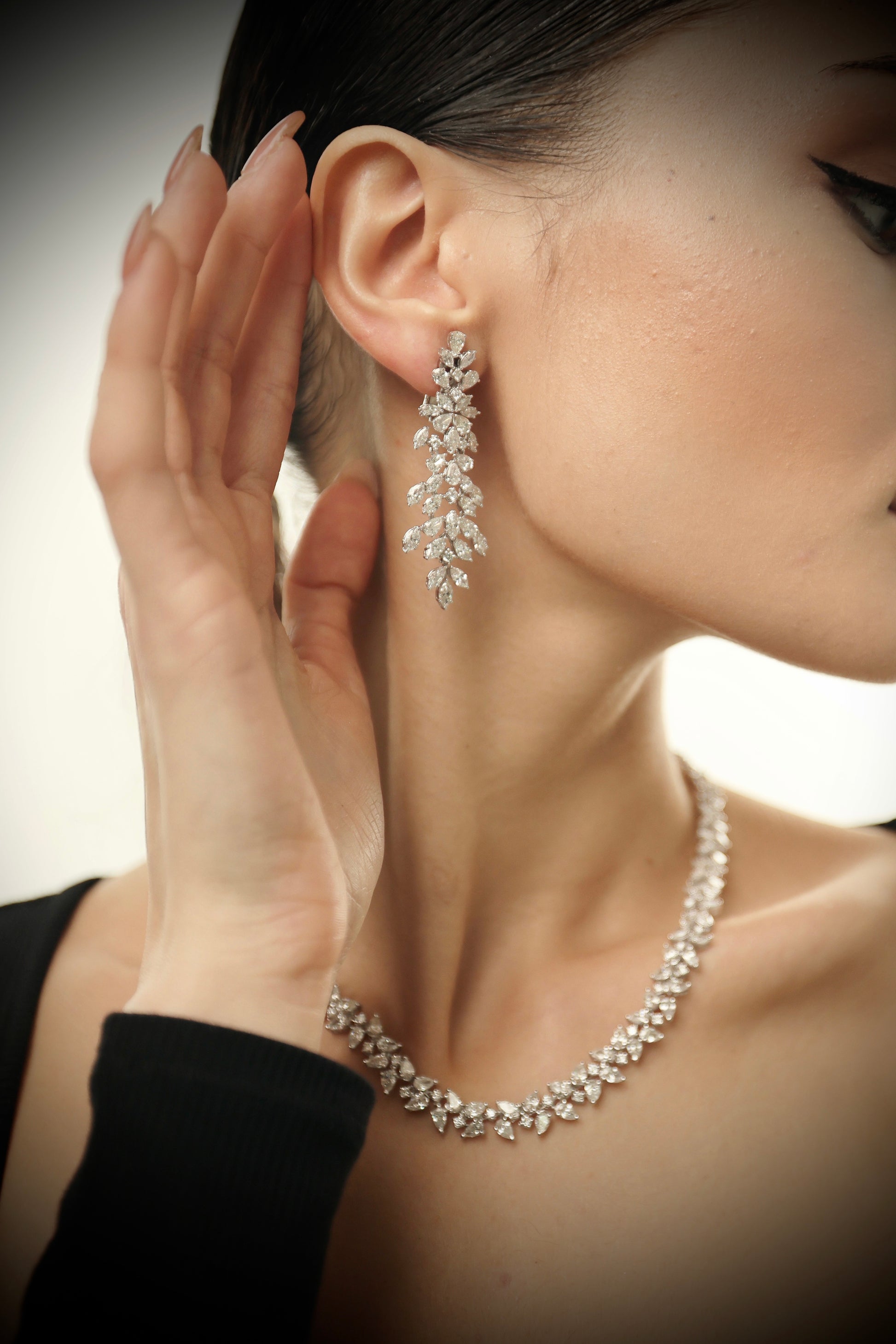Complete your elegant look with these PEAR & MARQUISE DIAMOND EARRINGS. Featuring a stunning 11.03 carat total diamond with 17.63 grams set in 18k gold, these earrings will add a touch of luxury and sophistication to any outfit. Elevate your style with these timeless and exquisite earrings.